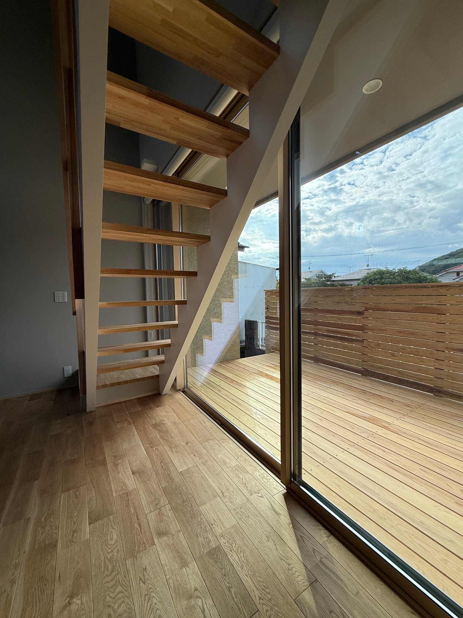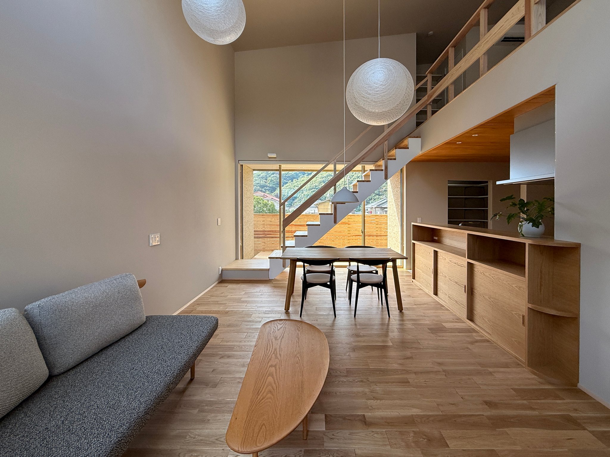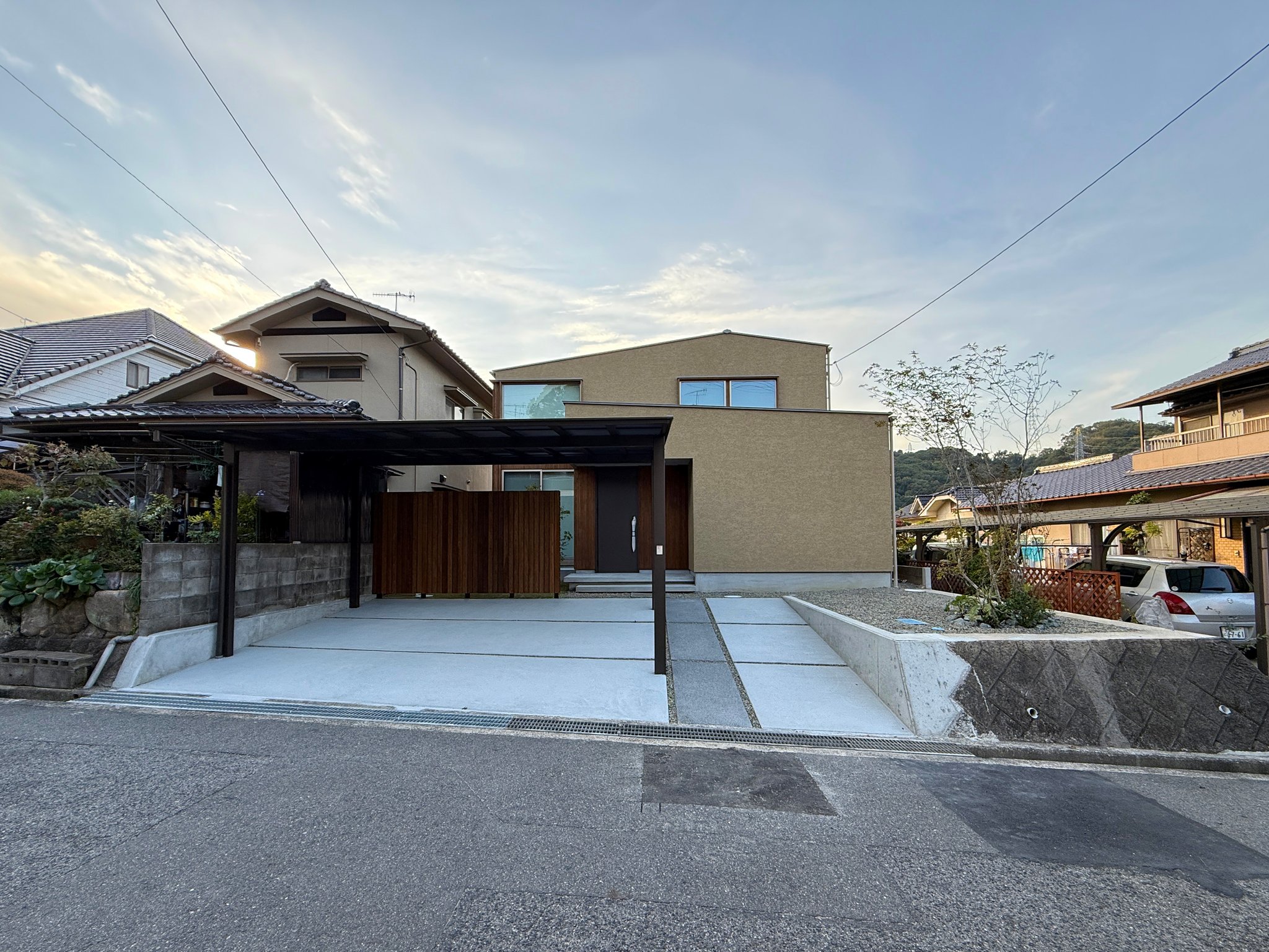 新築 久松の家2025 塗り壁の柔らかな質感と、天然木化粧板が醸し出す温もりある外観。 シンプルなデザインの中、素材が持つ美しさと時を重ねるごとに深まる味わいを大切にしました。 計算された開口部からは、優しい光と心地よい風が室内にそっと入り込み、日々の暮らしに穏やかなリズムをもたらします。 窓の先には移ろう稜線の風景が広がり自然とのつながりを感じながら静かに、そして豊かに暮らす。 そんな、心地よさと美しさが調和した住まいです。 工事場所:広島県福山市 敷地面積:70坪(232㎡) 延床面積:36坪(121㎡) 構 造 :木造軸組(在来) 間取り :3SSLDK ご家族 :3名 tagPlaceholderカテゴリ: