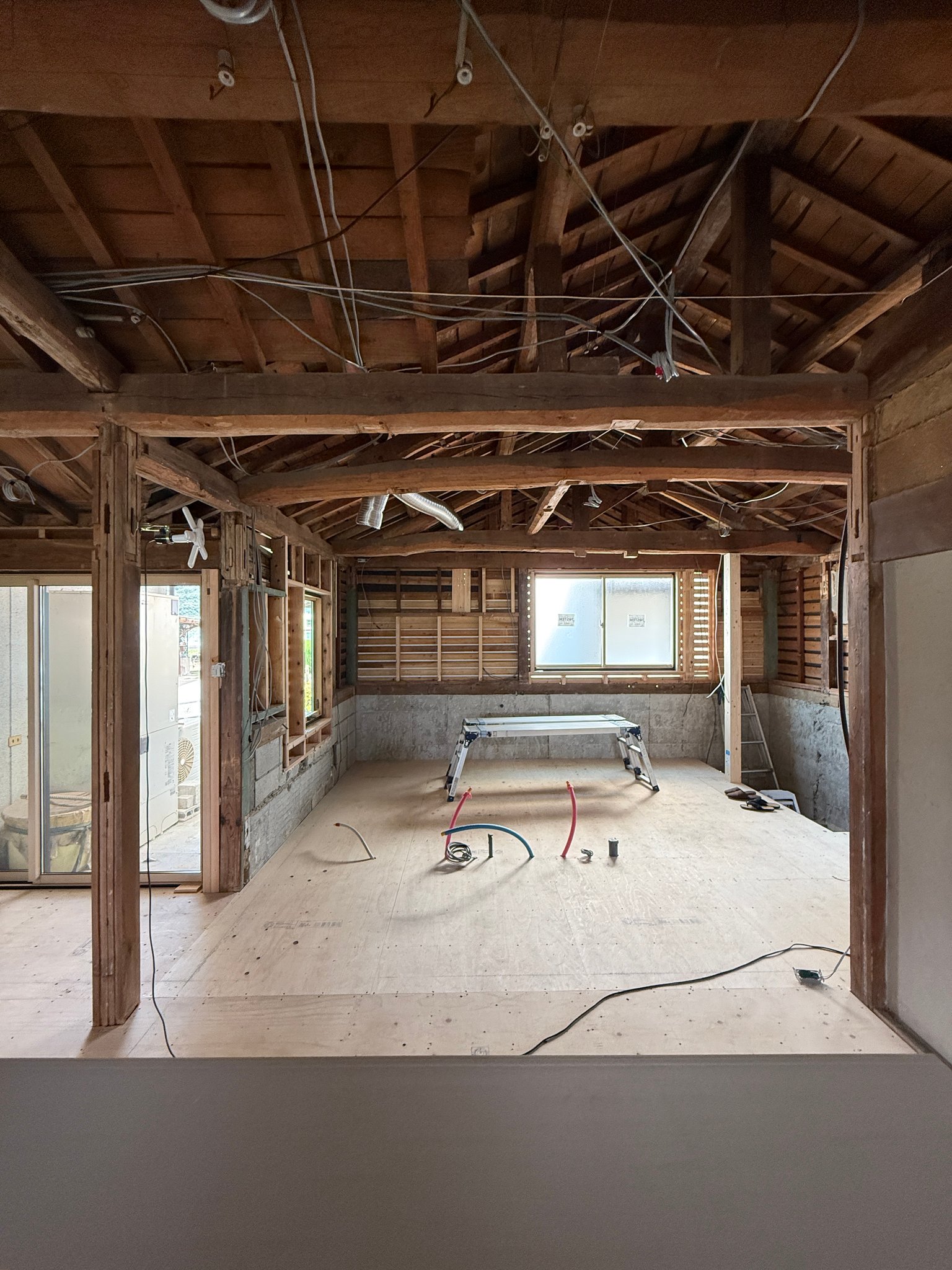 この住まいには、立派な柱や太鼓梁をはじめ肥松の縁甲板や建具、家具などお祖父様がこだわり抜いて作り上げた価値ある意匠が随所に残されていました。